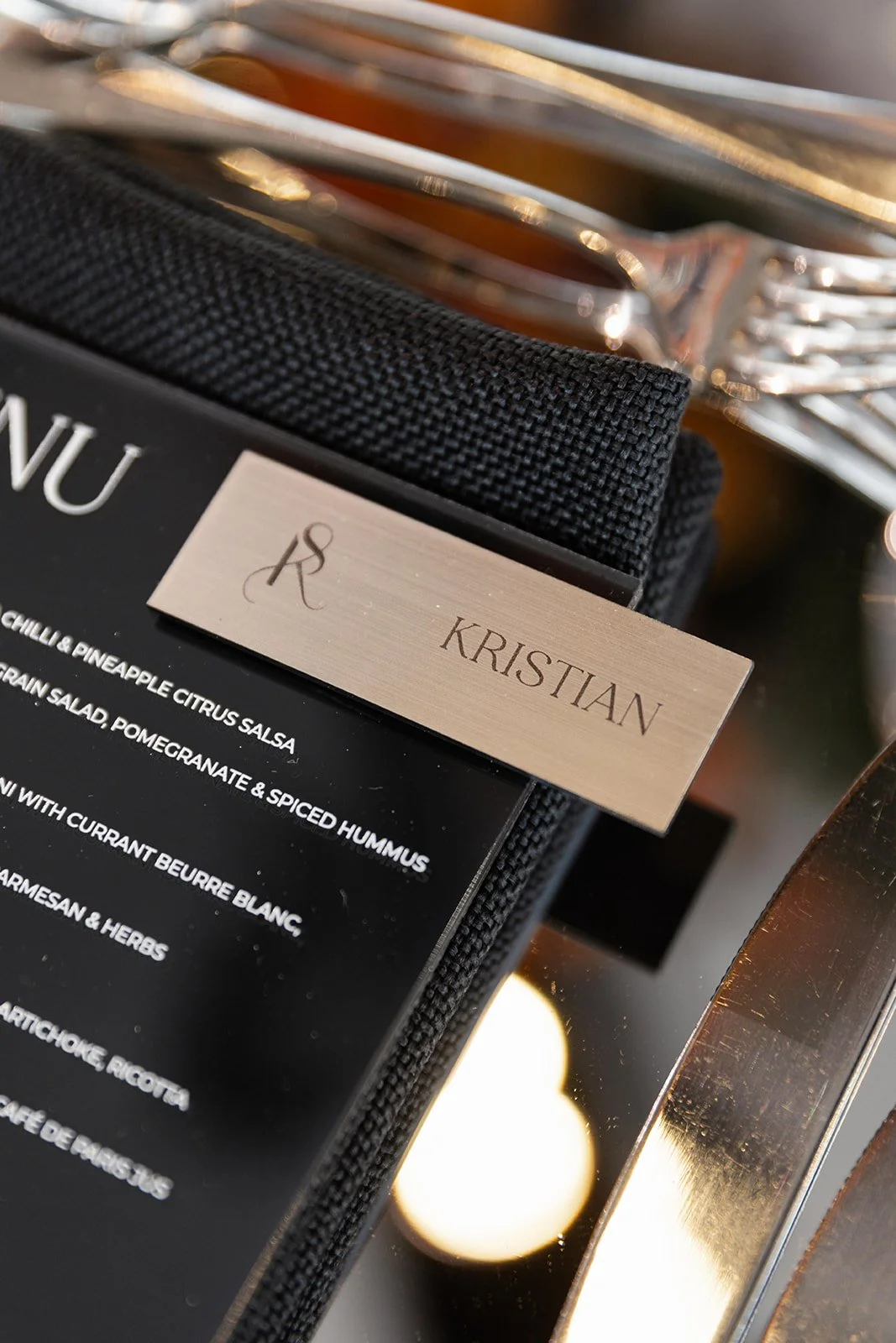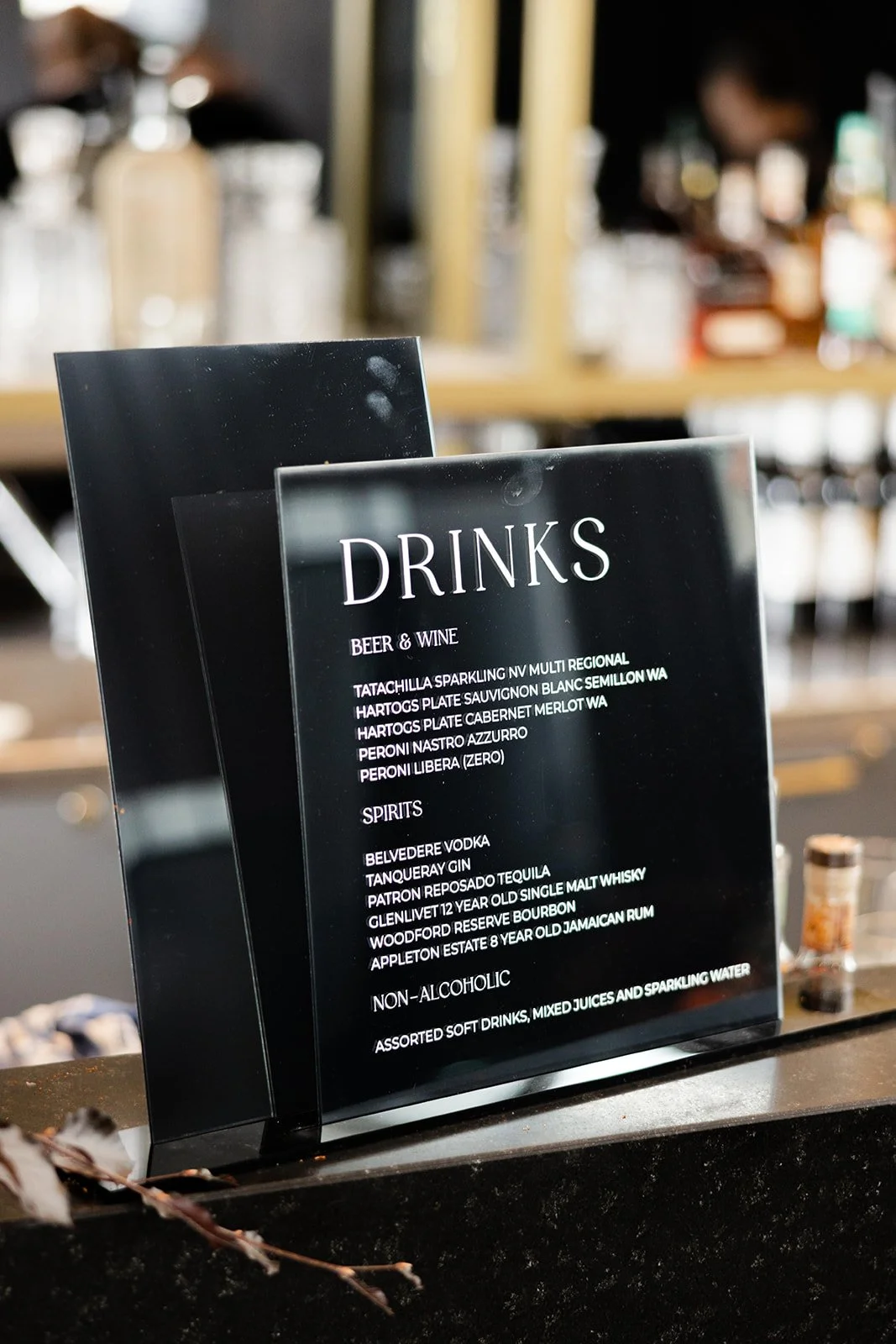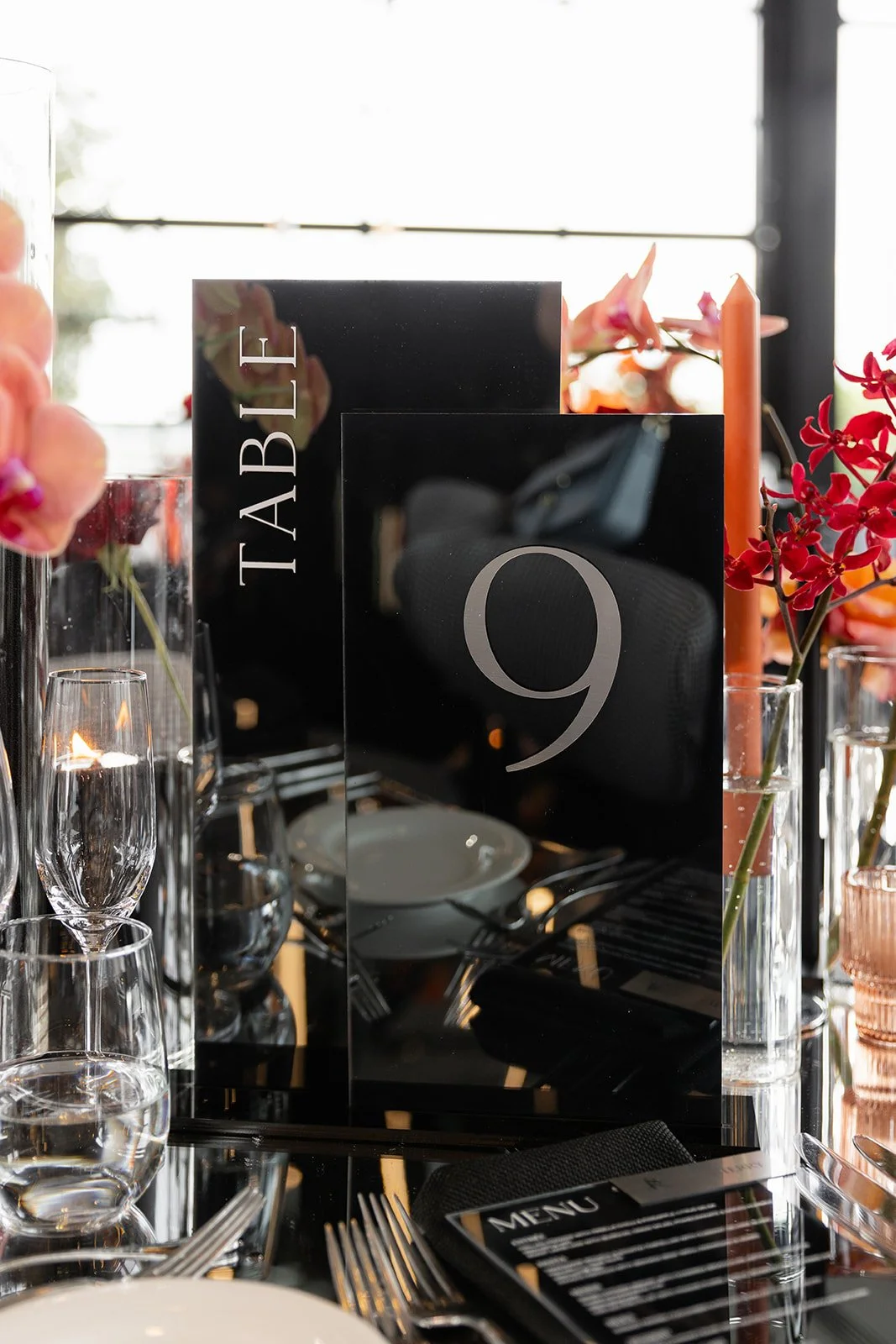 Choose from mirrored, frosted, tinted, or solid acrylic in a range of shapes, styles, and thicknesses. Pair with foiling, UV printing, or engraving for a luxurious modern aesthetic that immediately sets the tone for your event.